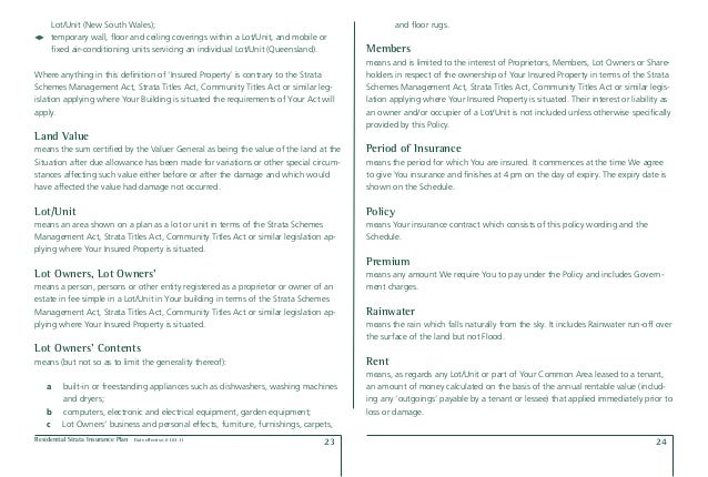 Residential Strata Pds Product Disclosure Statement Policy Wording